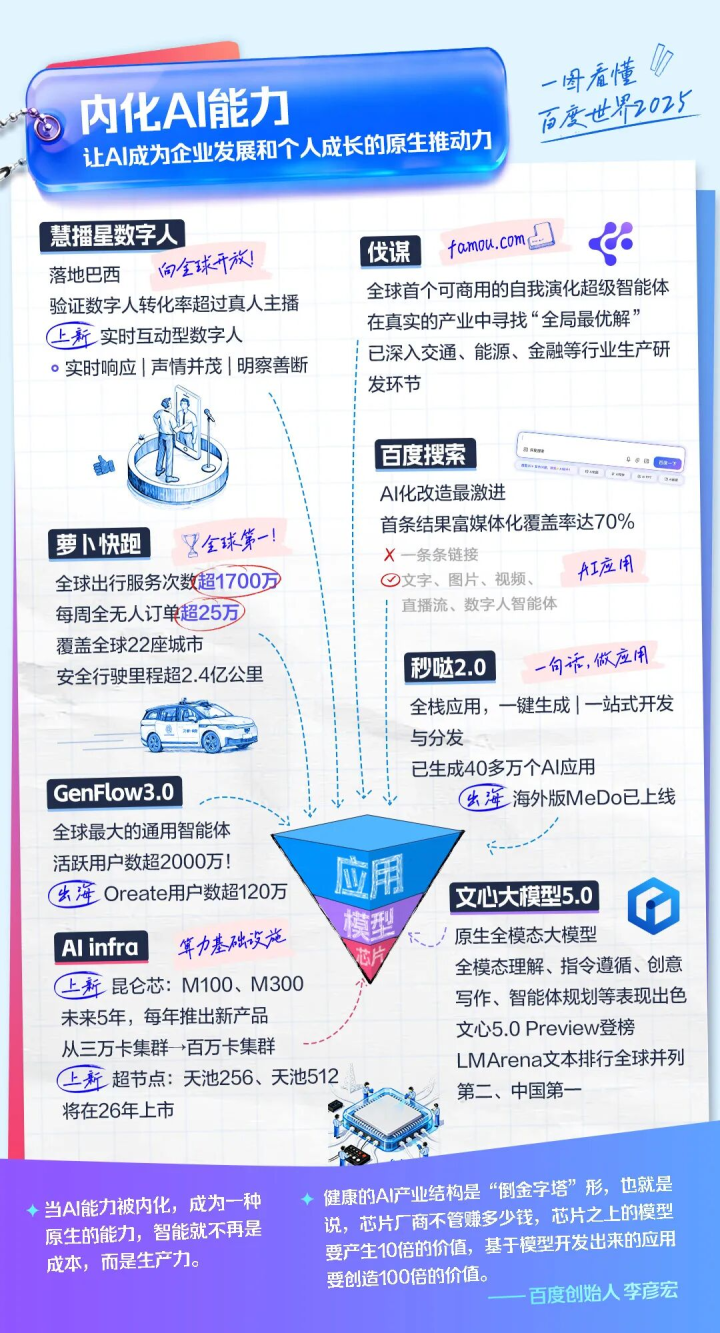 基于此,百度推动的“倒金字塔”转型,其核心远见在于,AI的终极价值不在技术本身,而在应用场景的深度融合。