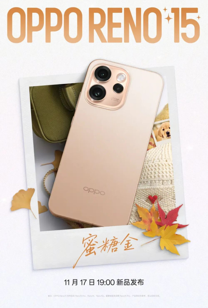 除此之外,Reno15 系列手机目前还公布了星光蝴蝶结、极光蓝、可露丽棕、蜜糖金四款外观。